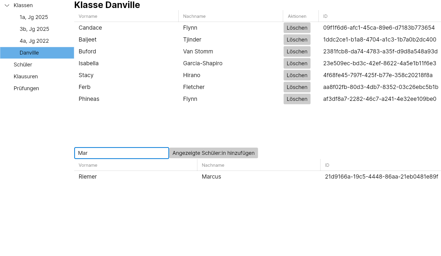 Ich war einige Jahre Dozent an einer Fachhochschule und meine Frau ist Lehrerin. Dabei hantiert man naturgemäß viel mit Klausuren und Noten. Im Laufe der Jahre sind dabei einige Excel-Dokumente entstanden, aber es war immer fummelig den Stand einzelner Schüler über die Jahre zu verfolgen. Dieses eher rudimentäre Programm liefert eine Benutzerschnittstelle zur Erfassung von Noten über eine SQLite-Datenbank. Die Auswertung erfolgt (noch) über manuelle SQL-Abfragen. Der Quelltext ist auf Github verfügbar.